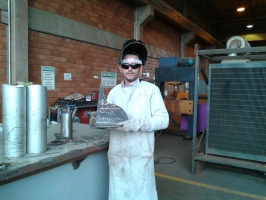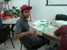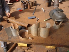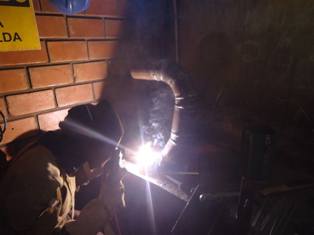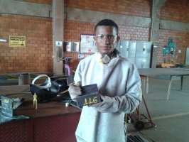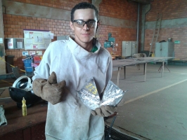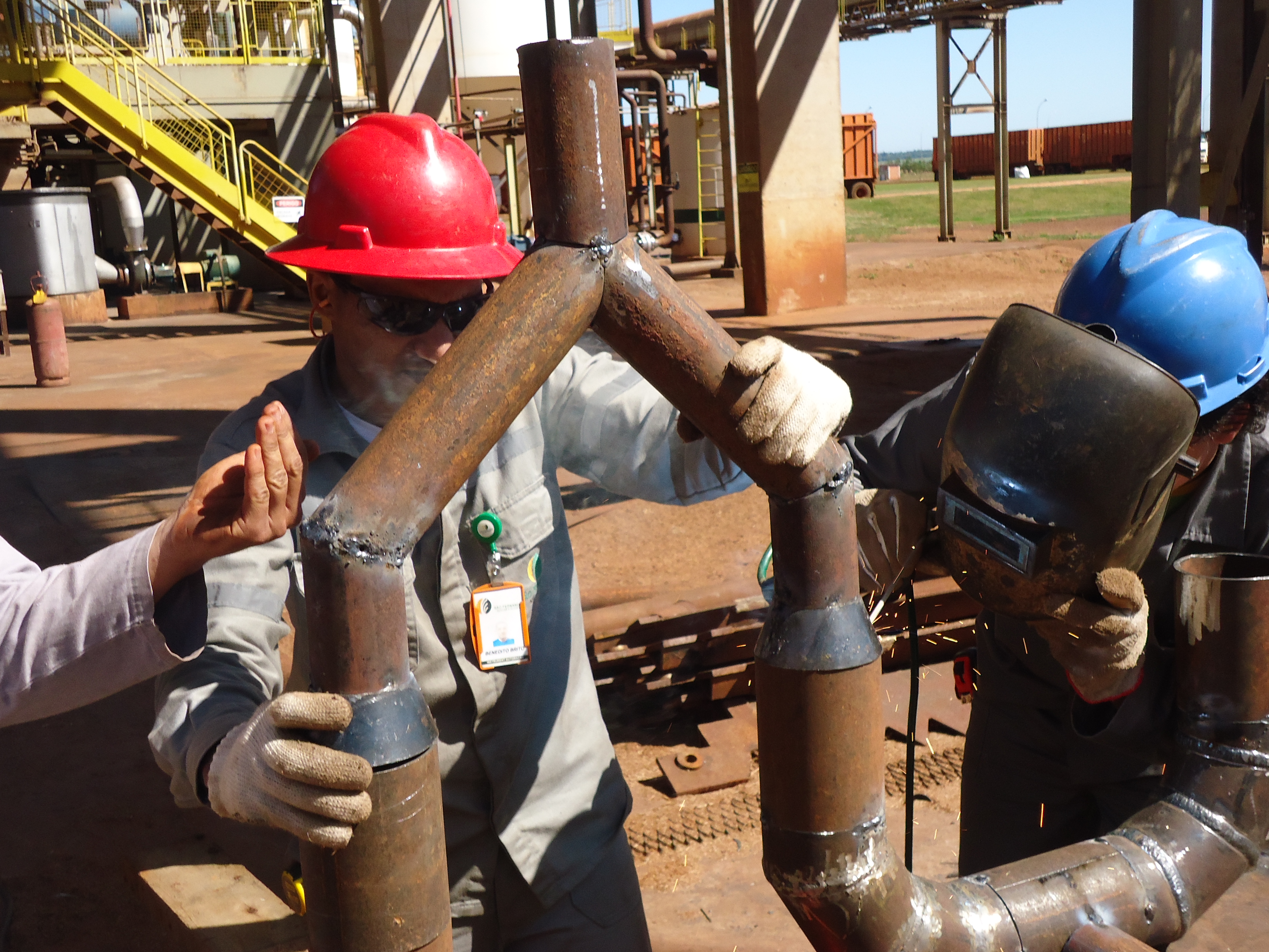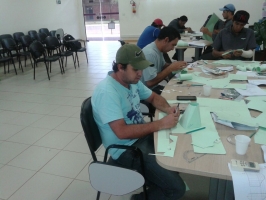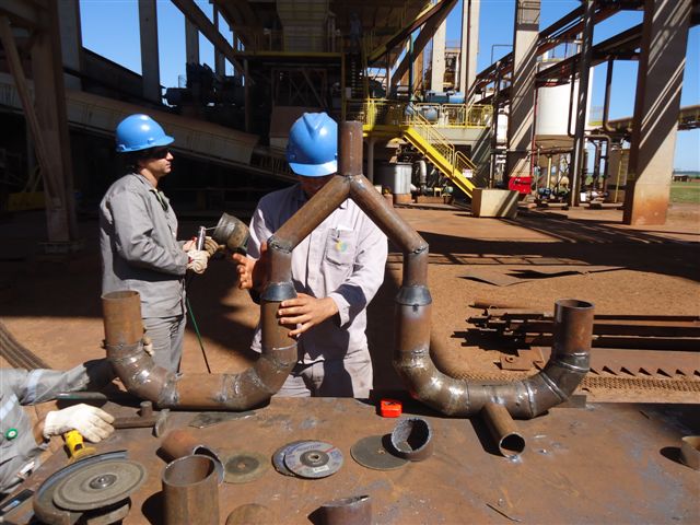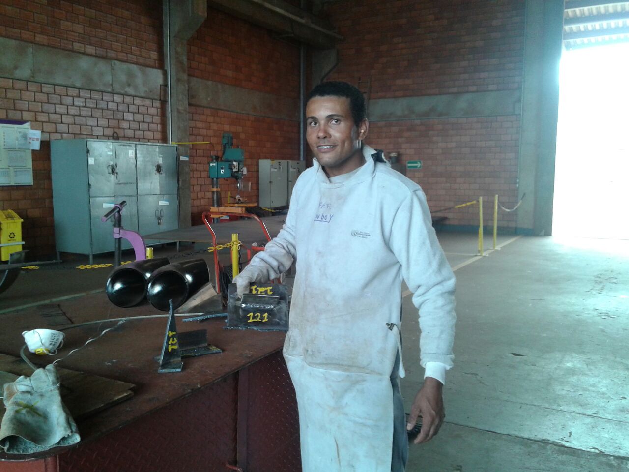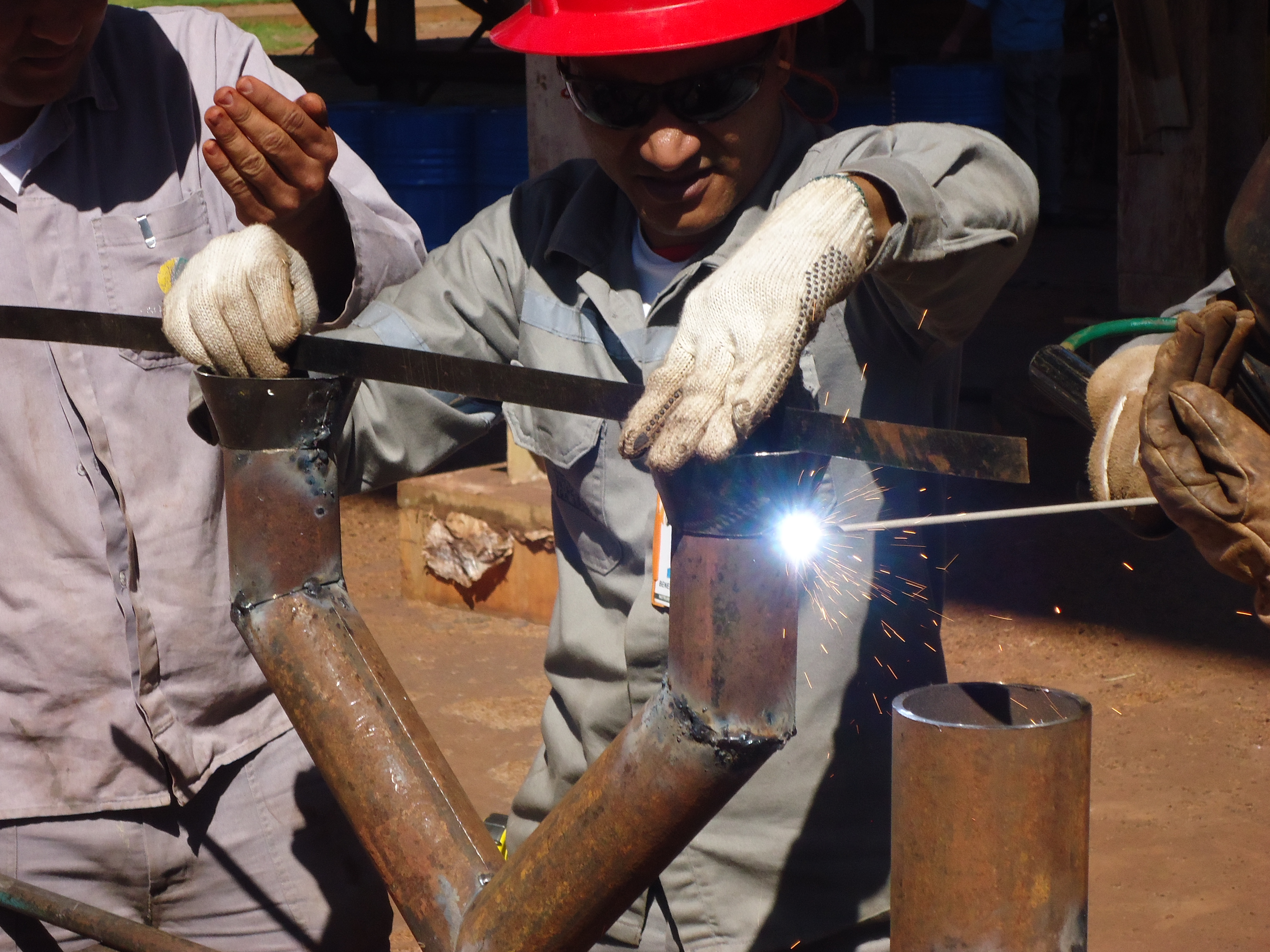 Fotos de turmas de Soldagem e Caldeiraria (aulas teórico/práticas), em sala de aula e no campo. Os alunos efetivamente realizam as práticas primeiramente em cartolina (sala de aula) e após as aulas no campo, em chapa de aço carbono, utilizando as técnicas aprendidas na teoria.